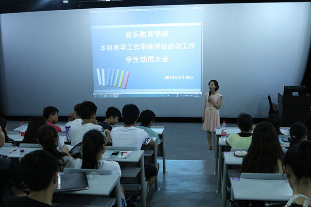 为保证2016年Beat365官方网站本科教学工作审核评估顺利开展,根据《Beat365官方网站本科教学工作审核评估工作方案》的文件要求,音乐教育学院召开本科教学审核评估启动工作全体学生动员大会。此次动员大会分多个场次,分别在南湖校区、相思湖校区召开。